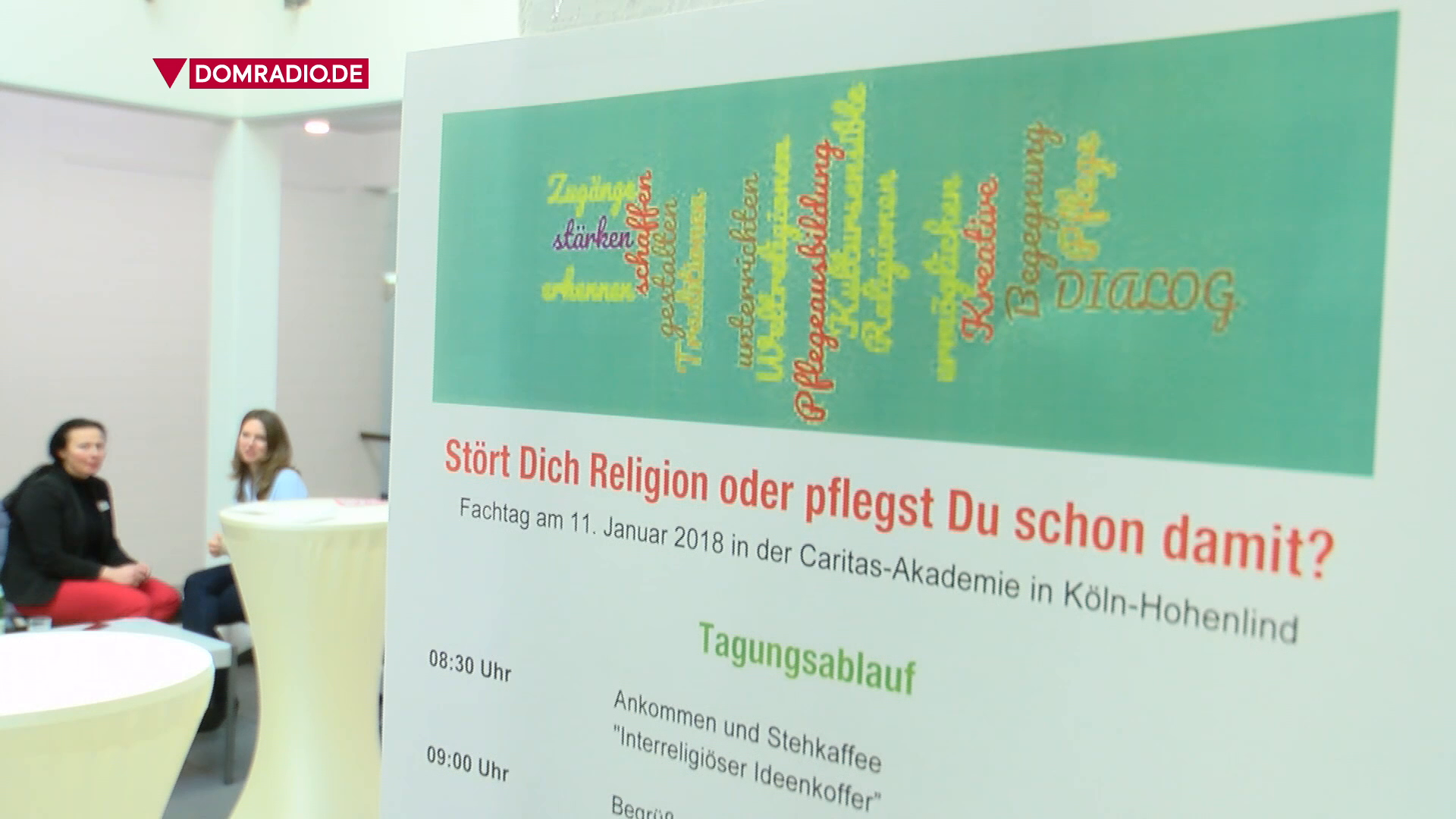 „Stört dich Religion oder pflegst Du schon damit?“ war der Titel einer Fachtagung der Caritas, die an diesem Donnerstag im Erzbistum Köln stattfand. Rund 150 Pflegeschüler, Ausbilder und Experten kamen zusammen, um sich über die Bedeutung von christlichen Werten in der Kranken- und Altenpflege auszutauschen. Im Mittelpunkt müsse dabei immer die Menschenwürde stehen - so die Expertin Ute Freisinger-Hahn Bauchbinde: Ute Freisinger-Hahn Projektreferentin religiöse Bildung in der Pflege O1 Die Pflegequalität ist ne andere…Bedürfnisse im Alter Der Fachtag ist eine Veranstaltung im Projekt „DIALOG! Pflege – Bildung – Glaube – Ethik“, das die katholischen Pflegeausbildungsstätten im Erzbistum Köln in ihrem religiösen und ethischen Unterrichten unterstützt.