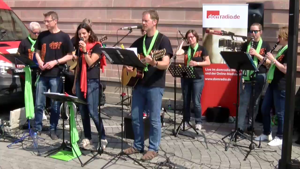 Die Kölner Band Church Rocking zu Gast am domradio.de-Stand auf dem 100. Katholikentag in Leipzig.