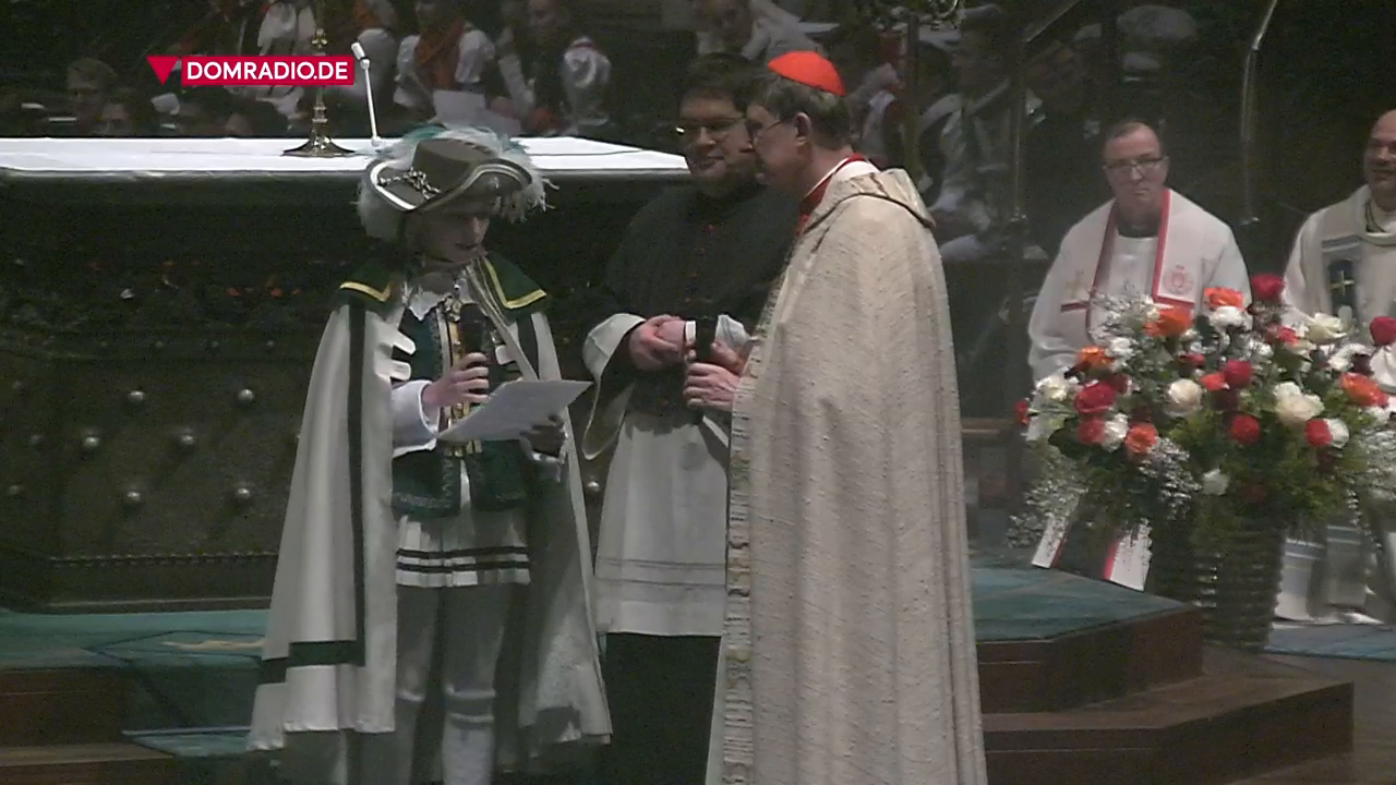 Der Kölner Erzbischof Rainer Maria Kardinal Woelki hat das Engagement von Karnevals- und Nachbarschaftsvereinen gewürdigt. Mit tausenden jecken Gläubigen feierte er am Mittwochabend im Kölner Dom den Sessionsauftaktgottesdienst für die Karnevalisten. Sehen Sie hier die Übergabe von Gaben an den Erzbischof druch kölsche Pänz.